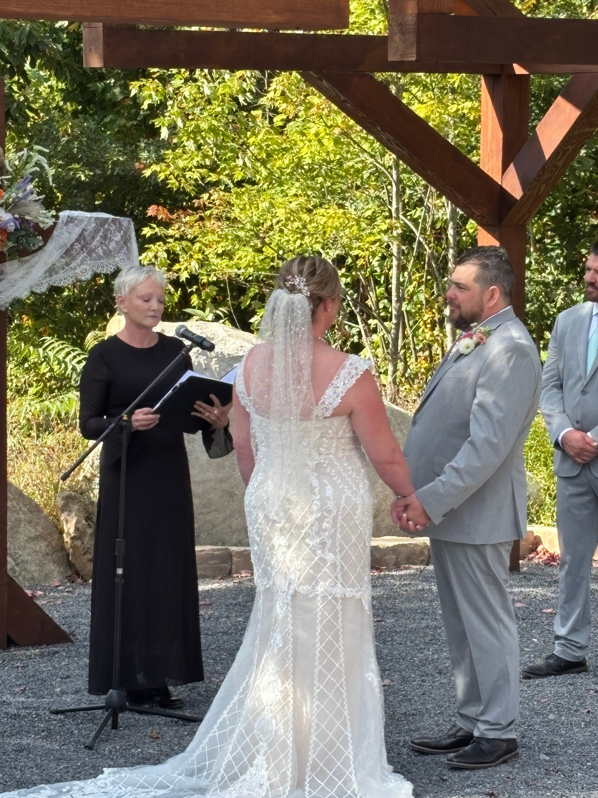 I love not being tied to one venue. I’ve officiated Halloween weddings in the woods, Christmas ceremonies in churches, upscale venues, in front of the Mothman Statue, at homes, cliff overlooks, amphitheaters, and county courthouses.